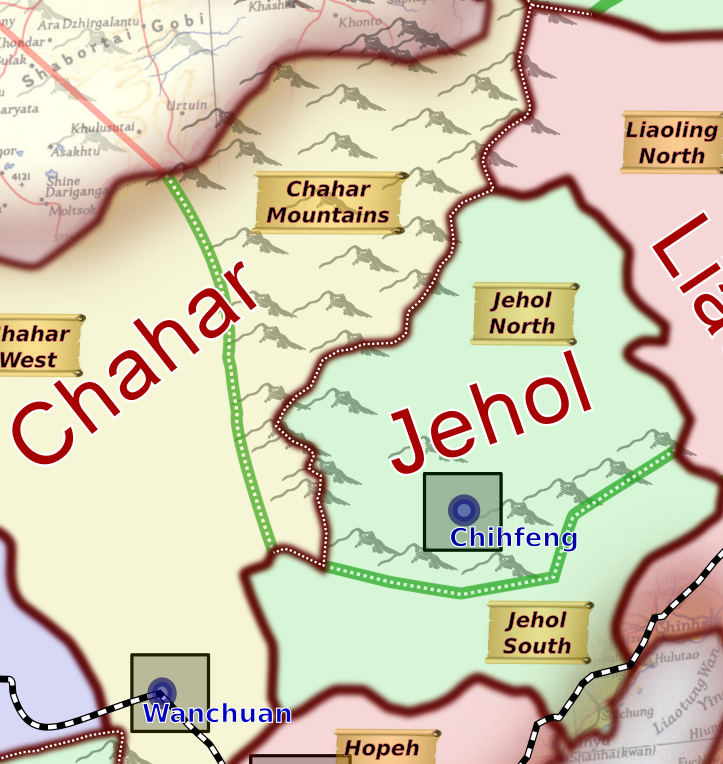 There is a large central map of China, presented in 3 parts (Manchuria, North Western China covering Sinkiang, Ma, Yunnan and Szechwan lands and eastern China. Each province is named, in one colour, and is split into Districts by boundaries in green. Where mountains and rivers affect movement, then a dotted line is shown central to the boundary. Soviet movement in the Soviet Union is ordered by movement areas adjacent to the border with China. Soviet troops are deployed into one of those areas when they become available. Japanese troops are available from China (the current troops deployed as railway guards), from Korea, from Taiwan and from Japan itself. The internal Japanese game determines which are made available. It should be noted that Japanese troops may retreat and regroup in one of those three areas.